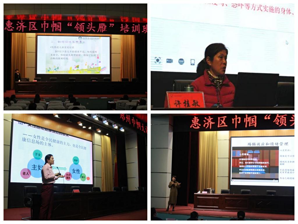 本次培训主要以集中学习为主,特邀郑州大学体育学院马克思主义学院德育教研室主任刘颖、郑州大学法学院副教授许桂敏、郑州大学体育学院运动医学与康复教研室主任吴严冰、二级心理咨询师李志英、副主任医师杨伟琴分别围绕党的十九届六中全会精神、女性反家暴维权、女性健康、和谐家庭建设、儿童常见病的预防与处理等内容进行专题授课。