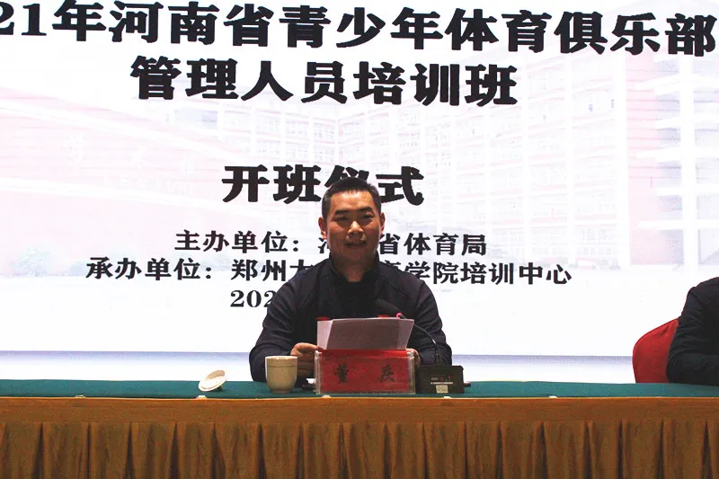 11月2日,由河南省体育局主办,郑州大学体育学院培训中心承办的2021年河南省青少年体育俱乐部管理人员培训班在郑州开班。来自各省辖市、省直管县(市)体育主管部门推荐的近300名青少年体育俱乐部管理人员参加培训。郑州大学体育学院副院长董庆、河南省体育局青少处副处长聂长忠出席开班仪式并讲话,郑州大学体育学院培训中心主任肖勇主持仪式。