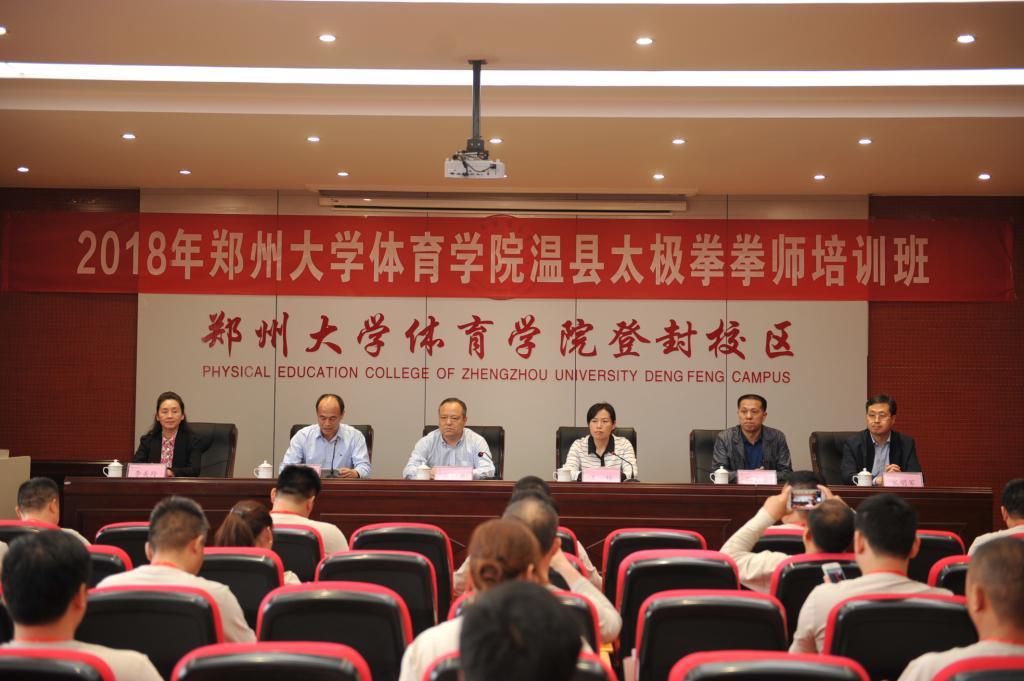 4月21日上午,2018年郑州大学体育学院温县太极拳拳师培训班在我院登封校区正式开班,来自温县的40名太极拳拳师参加了培训。学院党委书记张绍通、温县县委书记王玲出席开班仪式并讲话。
