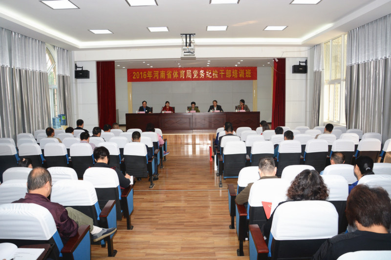 10月17日下午,2016年河南省体育局系统党务纪检干部培训班在我院登封校区开班,省体育局直属二级机构的党委书记、纪委书记、党办主任和纪检监察室主任共56人参加了培训。省体育局副局长梅宝菊、学院党委书记魏真、局直属机关党委专职副书记张利丽、局直属机关纪委书记郝倩山、学院副院长刘卫华出席开班仪式。张利丽副书记主持仪式。