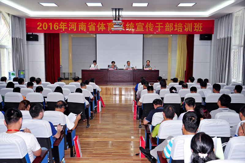 7月5日下午,2016年河南省体育系统宣传干部培训班在我院登封校区隆重开班。来自全省各体育部门的98名新闻宣传负责人参加了本次培训。河南省体育局党组成员、副局长梅宝菊同志、我院院长张绍通同志、省体育局直属机关党委专职副书记张利丽同志、我院副院长刘卫华同志参加了开班仪式并作重要讲话。
