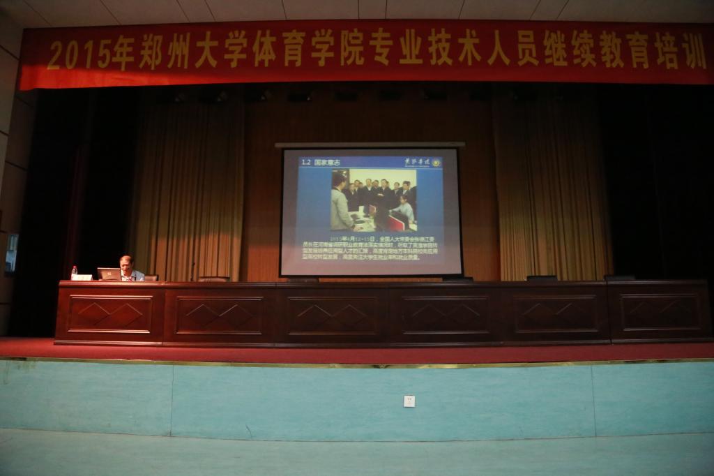 8月30日上午,2015年郑州大学体育学院专业技术人员继续教育培训班在我院报告厅正式开班,共有228名专业技术人员参加了本次培训。这是自2014年8月我院获批成为“河南省专业技术人员继续教育基地”以来首次举办此类培训。