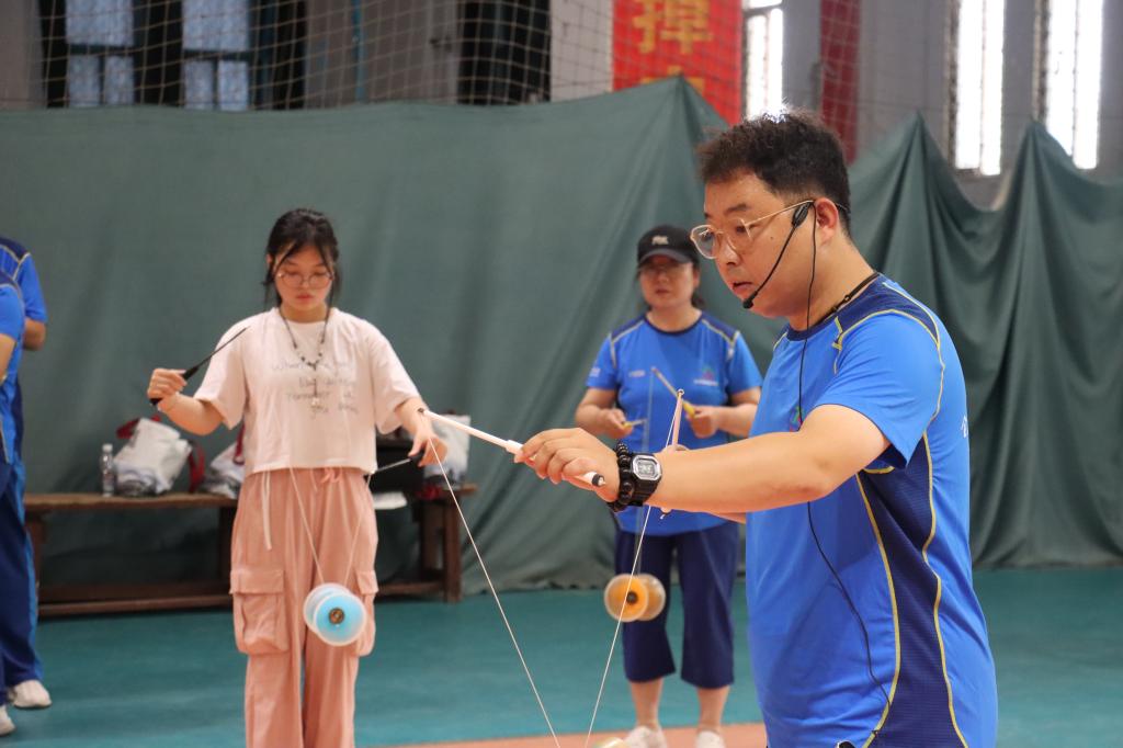 本次培训为期2天,课程设置丰富且实用,邀请了国家二级社会体育指导员刘炳坊围绕学校空竹课的教学方法及校园空竹推广分享、校园空竹推广套路教学训练、校园空竹推广套路教学训练、空竹基础套路的排练、空竹大型表演的排练等方面进行专题授课和技能训练。学员们热情高涨,积极参与互动,认真学习每一个动作。大家表示,这次培训收获满满,不仅提升了空竹技艺,还学到了实用的教学技巧,未来要把所学运用到教学中,让更多人爱上空竹运动。
