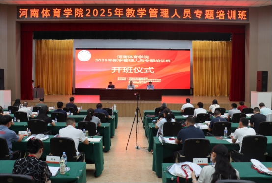 为促进我校教学管理水平整体提升,助力教育教学高质量发展,7月24日至27日,由我校教务处主办、国家社会体育指导员培训中心承办的教学管理人员专题培训班在新乡成功举办。各教学单位及相关教辅部门主任、副主任、教学秘书及全体教研室主任参加培训。河南体育学院校领导张学领、黄河科技学院校长杨保成出席开班仪式,教务处处长阎彬主持仪式。