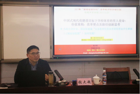 理论授课中,校领导张大超教授以《中国式现代化建设目标下中小学体育发展趋势与实现路径思考》为主题解读政策导向与发展趋势;郑州大学网络空间安全学院副院长、教授石磊围绕《人工智能赋能中学教学改革的实践路径与思考》阐释了数据赋能教学的内涵与方法;商丘市实验中学体艺中心副主任、三级教授耿爱英带来《新时代AI赋能背景下:教师个人成长规划与教育教学经验分享》前沿讲座,帮助学员把握个人职业成长路径;优秀教研员王恒、朱煦、张金龙围绕新课标素养,向学员传授了体育教学的设计与实施。