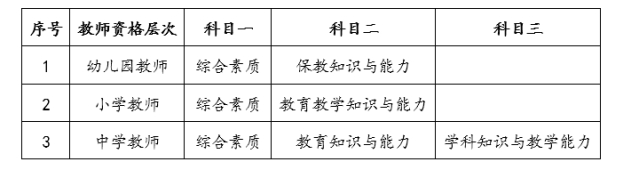 3、初级中学教师资格考试笔试科目一为综合素质(中学),科目二为教育知识与能力,科目三为学科知识与教学能力。初级中学“学科知识与教学能力”科目分为语文、数学、英语、物理、化学、生物、思想品德、历史、地理、音乐、体育与健康、美术、信息技术、历史与社会、科学等15个学科。